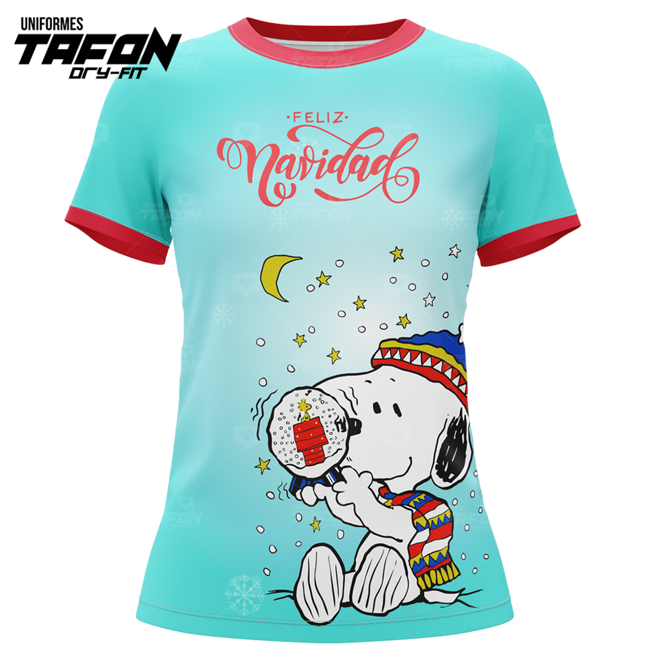 Este diseño presenta una camiseta sublimada navideña llena de color, alegría y espíritu festivo 🎄💙La prenda combina un vibrante tono turqueza con detalles en rojo navideño en el cuello y las mangas. En el centro, se destacan adorables personajes con atuendos de Navidad, con estrellas y esferas brillantes.