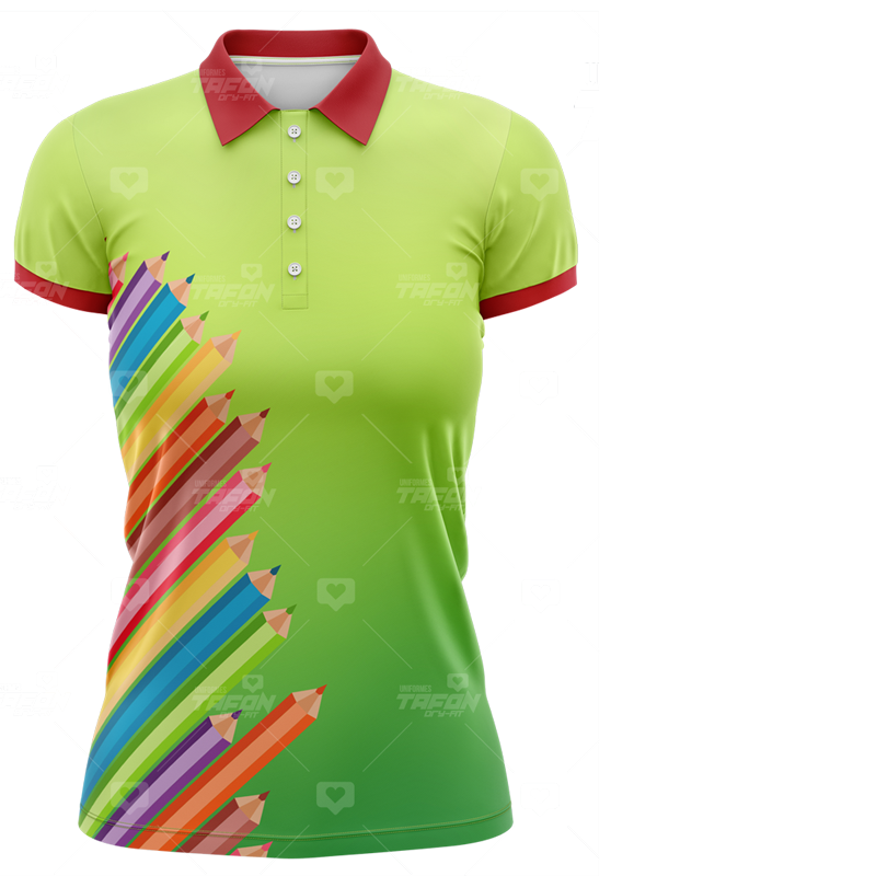 La Camisa Maestra Lápices de Colores combina frescura y vitalidad en un diseño pensado para docentes creativos. Con un fondo verde degradado y detalles en rojo en el cuello y mangas, destaca un estampado lateral de lápices multicolores, símbolo de la enseñanza, la imaginación y la diversidad en el aula.