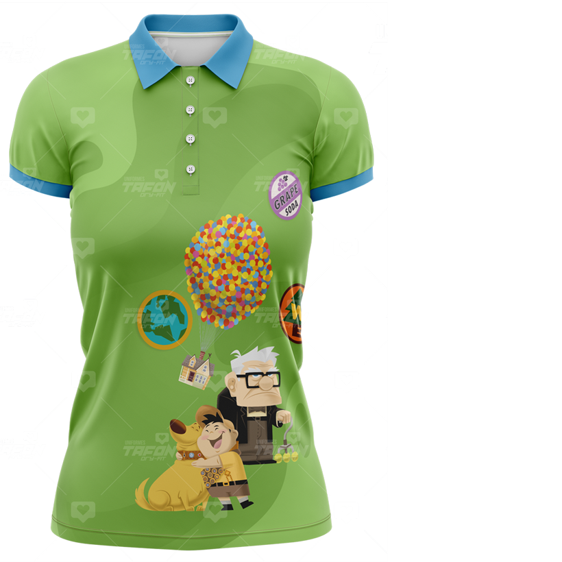 Disfruta de una camiseta polo sublimada de corte femenino, confeccionada en color verde vibrante con cuello celeste, que aporta frescura y originalidad.